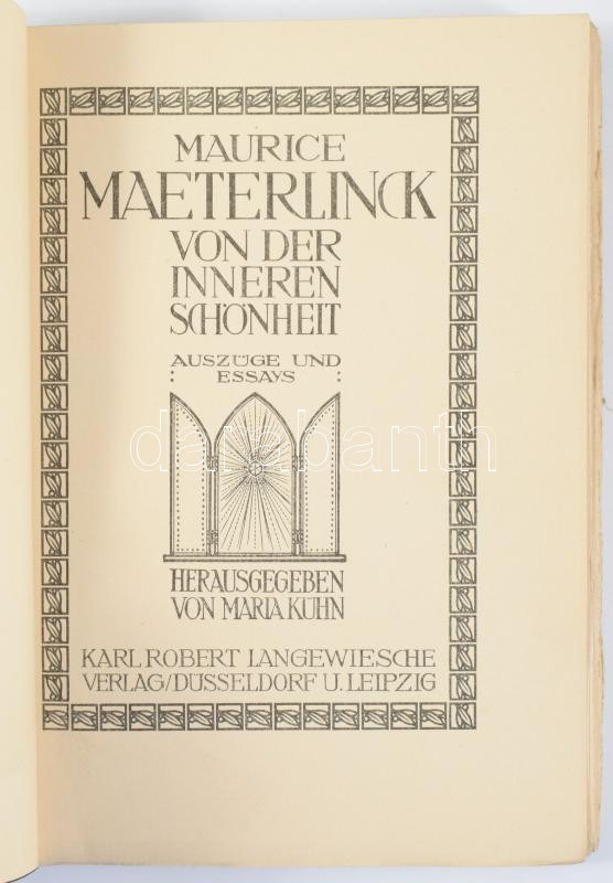 Maurice Maeterlinck: Von der Inneren Schönheit. Auszüge und Essays. Hrsg. von Maria Kühn. Düsseldorf-Leipzig,én., Karl Robert Langwiesche Verlag, 204+4 p. Német nyelven. Kiadói papírkötés.