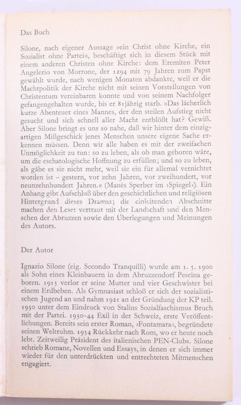 Silone, Ignazio: Das Abenteuer eines armen Christen. 1973, DTV. Kiadói papírkötés, kissé kopottas állapotban.