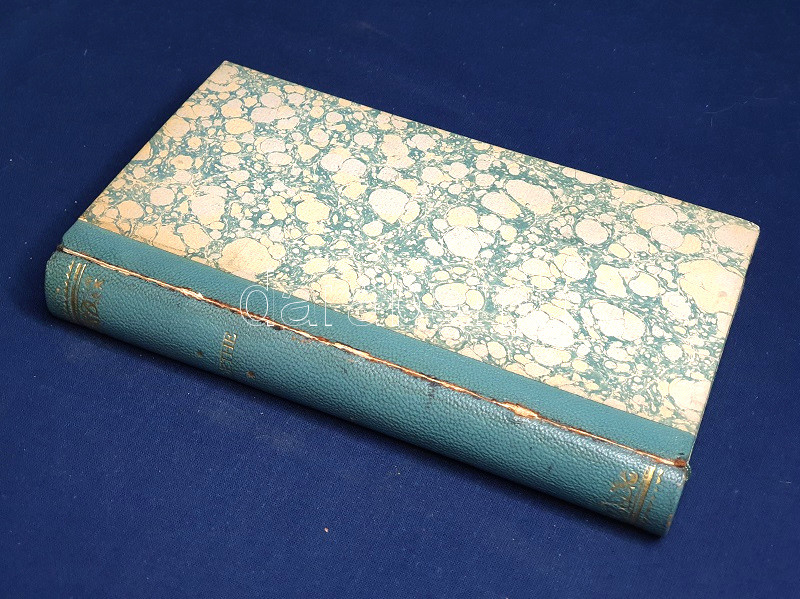 Aranyozott, enyhén sérült, javított gerincű korabeli félbőr kötésben, felül színes festésű lapszélekkel. Jó példány.