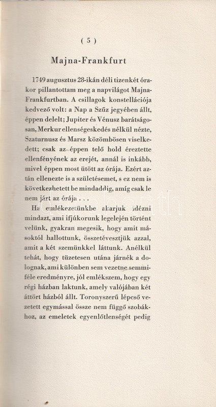 A Goethe halálának századik évfordulója alkalmából kiadott antológiahármas időrendi sorrendben válogat a költő lírai, prózai és értekező életművéből. A kolofonoldalakon Kozma Lajos könyvdíszei.