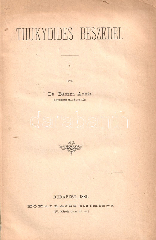 Thukydides beszédei. (Dedikált.)