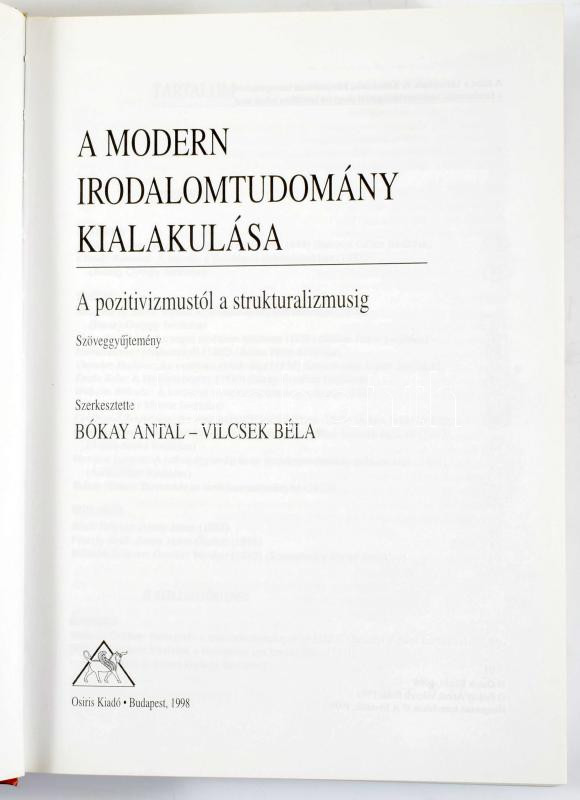 Bókay Antal - Vilcsek Béla: A modern irodalomtudomány kialakulása. Szöveggyűjtemény. Bp., 1998, Osiris. Kiadói kartonált kötés, jó állapotban.