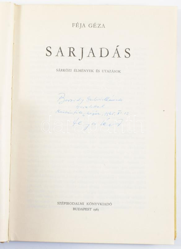 Féja Géza: Sarjadás. Sárközi élmények és utazások. DEDIKÁLT! Bp., 1963, Szépirodalmi. Félvászon kötés, kissé kopottas állapotban.