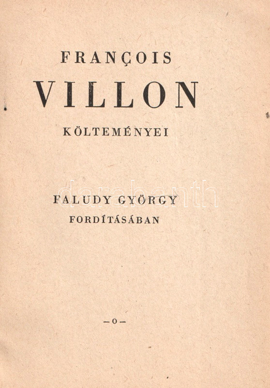 François Villon költeményei Faludy György fordításában. (A műfordító engedélye és impresszum nélküli magyarországi kalózkiadás.)