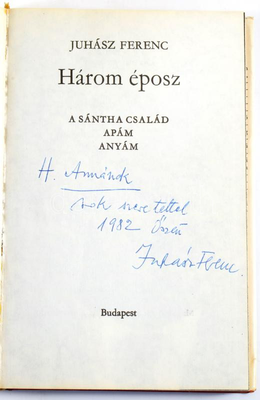 Juhász Ferenc: Három éposz. A Sándtha család. Apám. Anyám. DEDIKÁLT! 30 év. Bp.,(1975.),Magvető - Szépirodalmi, 395+2 p. Kiadói egészvászon-kötés, kiadói papír védőborítóban.