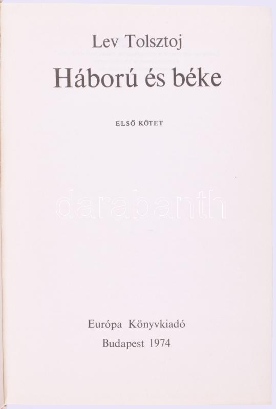 Tolsztoj, Lev: Háború és béke. Bp., 1974, Európa. Kiadói egészvászon kötés, papír védőborítóval, jó állapotban.