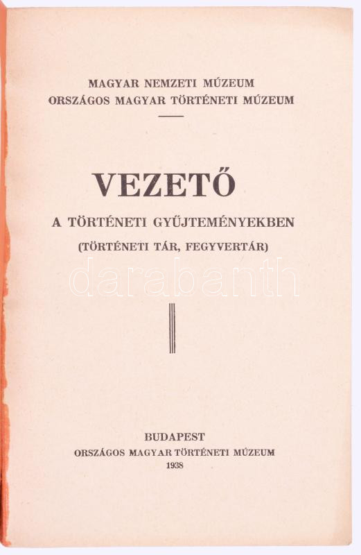 Magyar Nemzeti Múzeum - Országos Magyar Történeti Múzeum. Vezető a régészeti gyűjteményben (Őskor, római kor, népvándorláskor.) + (Történeti Tár, Fegyvertár.) Összeáll.: Bárányné Dr. Oberschall Magda és Tóth Zoltán. Bp., 1938., Országos Magyar Történeti Múzeum, 170 p.+5 sztl. lev.; 122 p.+16 t. Kiadói papírkötés. +