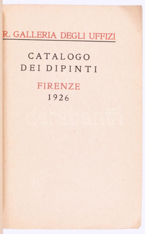 Catalogo dei Dipinti. Firenze, 1926. Kiadói papírkötés.