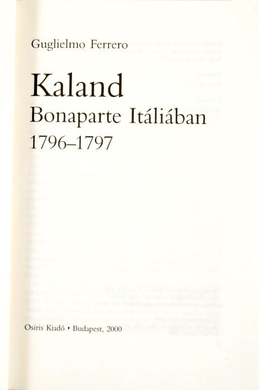 Ferrero, Guglielmo: Kaland. Bonaparte Itáliában 1796-1797. Bp., 2000, Osiris. Kiadói papírkötés, jó állapotban.