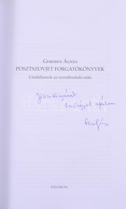 Gereben Ágnes: Posztszovjet forgatókönyvek. Utódállamok az ezredforduló után. DEDIKÁLT! Bp., 2014, Helikon. Kiadói kartonált papírkötés.