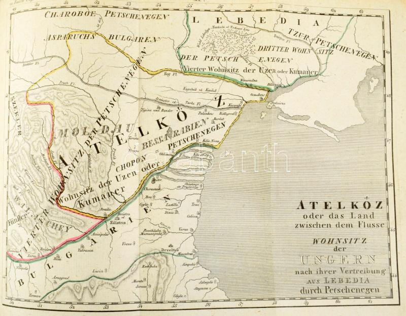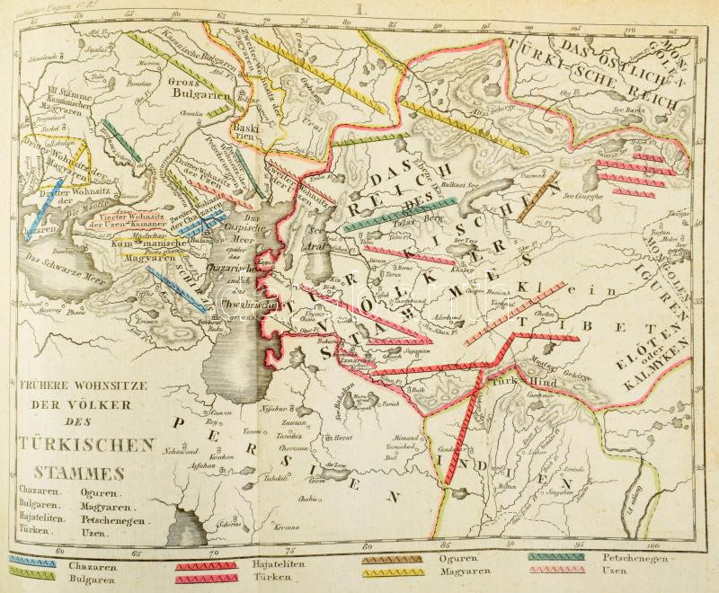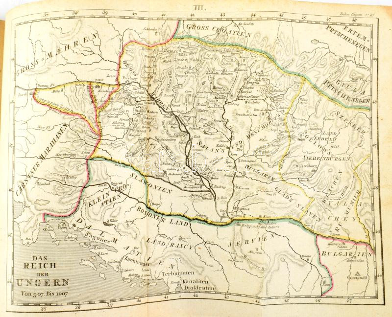 Leipzig, 1815, Johann Friedrich Gleditsch, XXXVIII+726+2 p.+ 3 (kétoldalas táblázatok, I-VI) t. +3 (kihajtható, részben színezett rézmetszetű térképek, Der Völker des Türkischen Stammes, Atelköz oder Das Land zwischen dem Flusse, Das Reich der Ungarn Von 907 bis 1007) t. Német nyelven. Korabeli félbőr-kötés, kopott borítóval, a gerincen a címfelirat címkéjén kis hiánnyal, kissé foltos lapokkal.