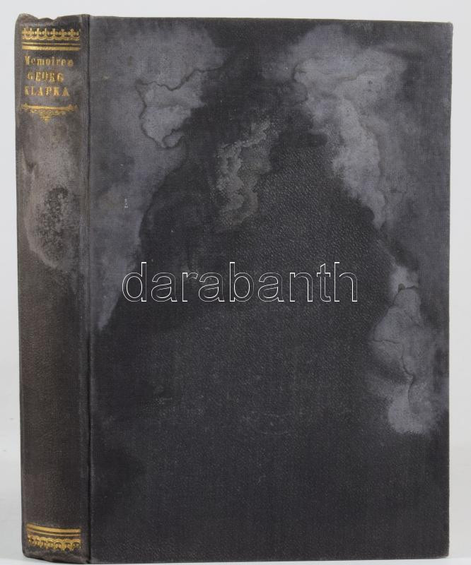 [Klapka György (1820-1892)]: Memoiren von Georg Klapka. April bis October 1849. [I. kötet.] Leipzig, 1850, Otto Wigand, 1 (litografált címkép) t.+ XXXIV+422+[2] p.+ 2 (térképek) t. Első kiadás. Német nyelven. Átkötött egészvászon-kötésben, ázásnyomokkal. A címlapon szentkirályszabadjai Karsa Ferenc (1827-1915) 1848-as honvéd hadnagy, Görgey Artúr parancsőrtisztje, árvaszéki elnök névbejegyzésével.
