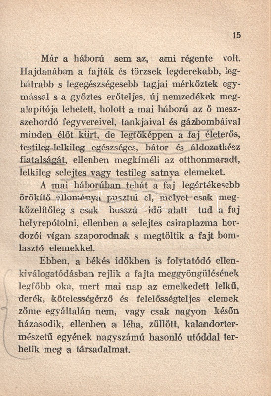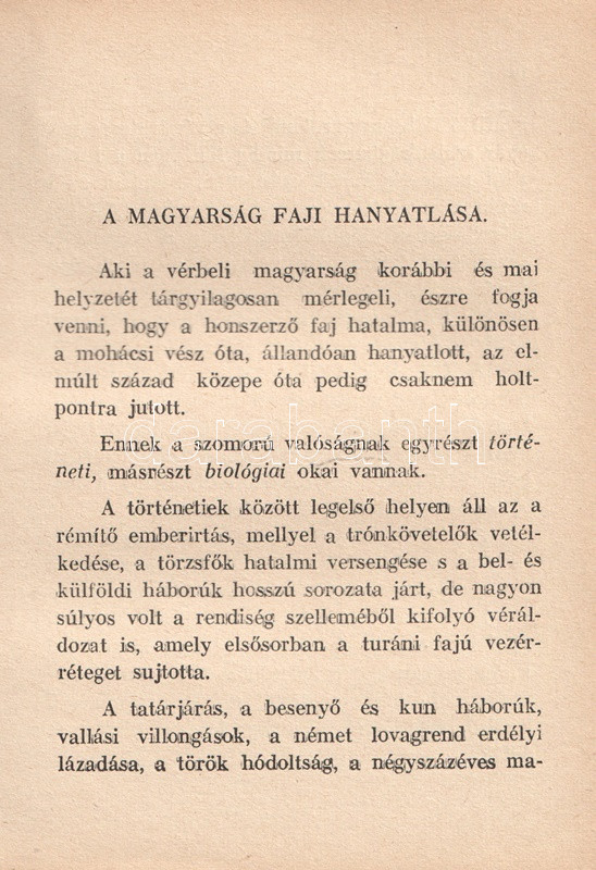 Méhely Lajos (1862-1952) zoológus, fajbiológus, zoológiai munkássága a Tanácsköztársaságot követően szociáldarwinista, fajvédő, majd antiszemita irányba fordult. Fajhigiénés szemléletmódú tanulmánykötete radikálisan fajvédő megjegyzésein túl néhány fajbiológiai jellegű falukutatói tanulmányt is tartalmaz. A kötet szerepel az Ideiglenes Nemzeti Kormány által 1945-ben betiltott művel jegyzékén.
