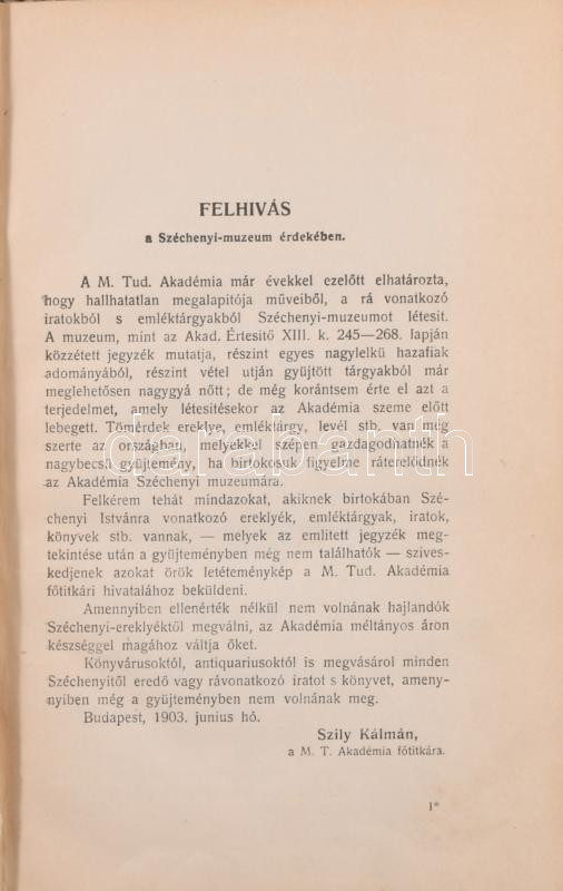 Nyesti Pál (szerk.): Gróf Széchenyi István emlékkönyv. Bp., 1904, Krammer és Erhardt. Kiadói egészvászon kötés, kopottas állapotban.