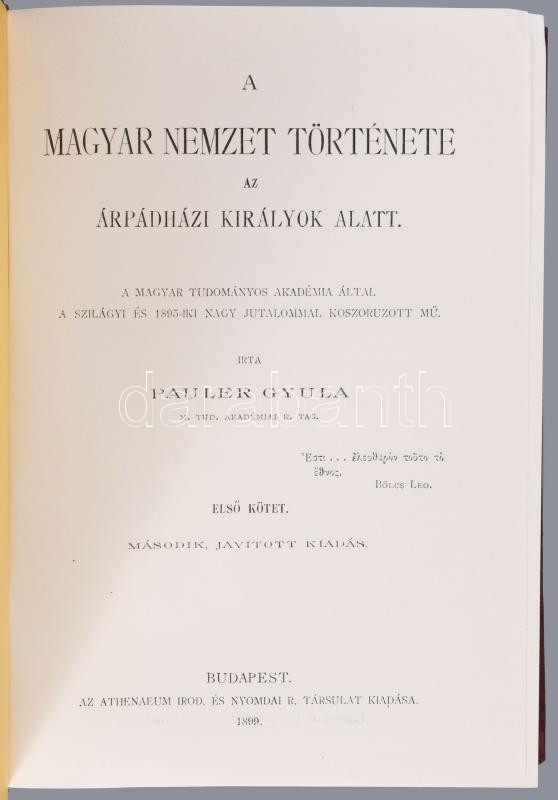 Pauler Gyula: A magyar nemzet története az Árpád-házi királyok alatt. I-II. kötet. Bp., 1984, ÁKV. Az 1899-es kiadás reprint kiadása. Kiadói aranyozott műbőr kötésben.