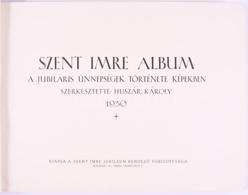 Szent Imre album. A jubiláris ünnepségek története képekben. Szerk.: Huszár Károly. Bp., 1930, Szent Imre Jubileum Rendező Főbizottsága. Kiadói papírkötés, kopottas állapotban.