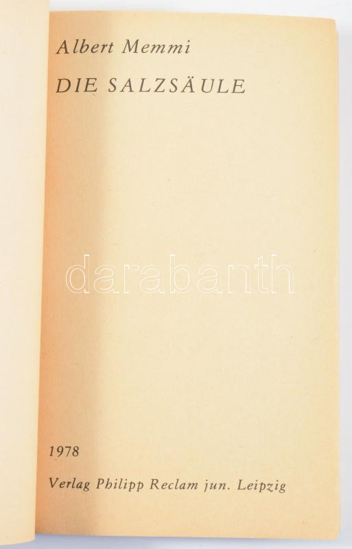 Memmi, Albert: Die Salzsäule. Leipzig, 1978, Verlag Philipp Reclam jun. Kiadói papírkötés, jó állapotban.