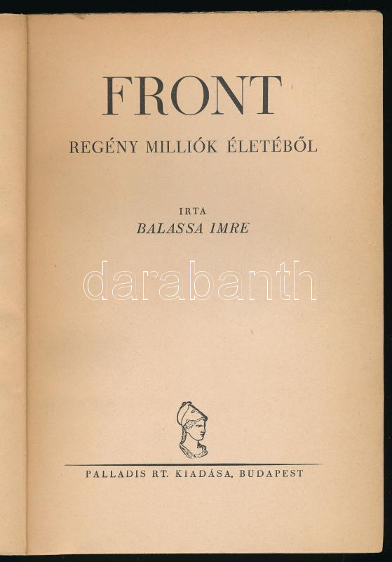 Balassa Imre: Front. Regény milliók életéből. Pengős Regények. Bp., é.... https://www.darabanth.com/de/518-Auktion-Philatelie-Postkarten-Numismatik-Kunstwerke-Bucher-Schreibwaren-Schmuck/524.0/Bucher/Bucher-Militaria~121/Balassa-Imre-Front-Regeny-milliok-eletebol-Pengos-Regenyek-Bp-en-1931-Palladis-~II3514629