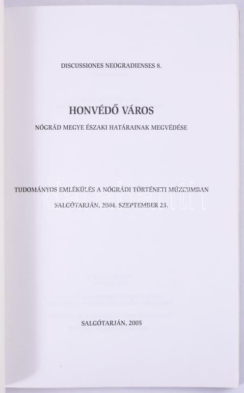 Honvédő város. Nógrád megye északi határainak megvédése. Tudományos emlékülés a Nógrádi Történeti Múzeumban. Salgótarján, 2004. szeptember 23. Discussiones Neogradienses 8. Szerk.: Bagyinszky Istvánné, Szvircsek Ferenc. Salgótarján, 2005, Nógrád Megyei Múzeumi Szervezet, 89+[1] p. Kiadói papírkötés. Megjelent 300 példányban.