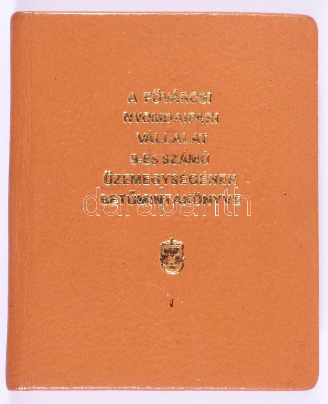 A Fővárosi Nyomdaipari Vállalat 9-es számú üzemegységének betűmintakönyve. (Minikönyv.) Szerk.: Günther István. [Bp., 1976], Fővárosi Nyomdaipari Vállalat. Kiadói műbőr-kötés. Megjelent 300 példányban. Számozatlan példány.