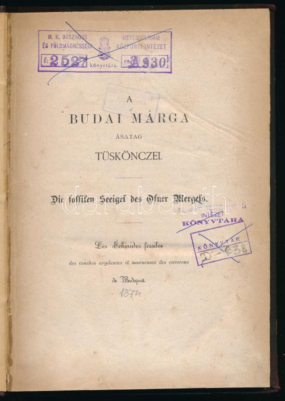 Dr. Pávay Elek: A budai márga ásatag Tüskönczei (Német-Magyar kétnyelvű). Bp., 1874, nincs kiadó. Félvászon kötésben