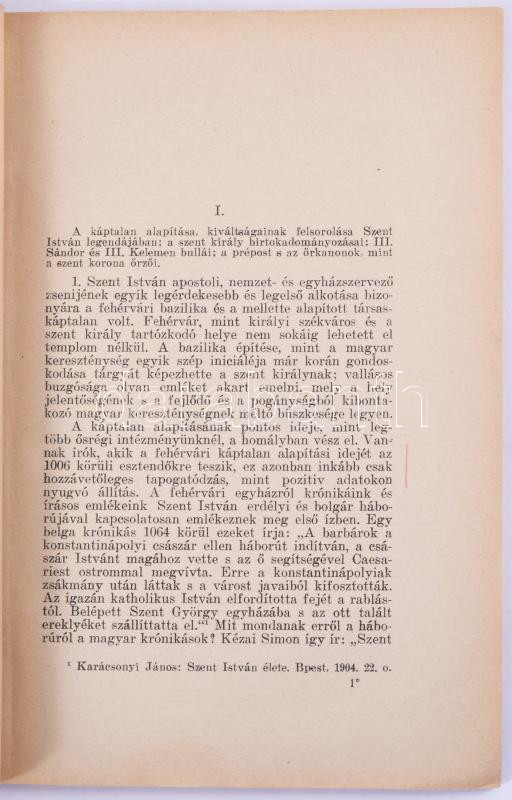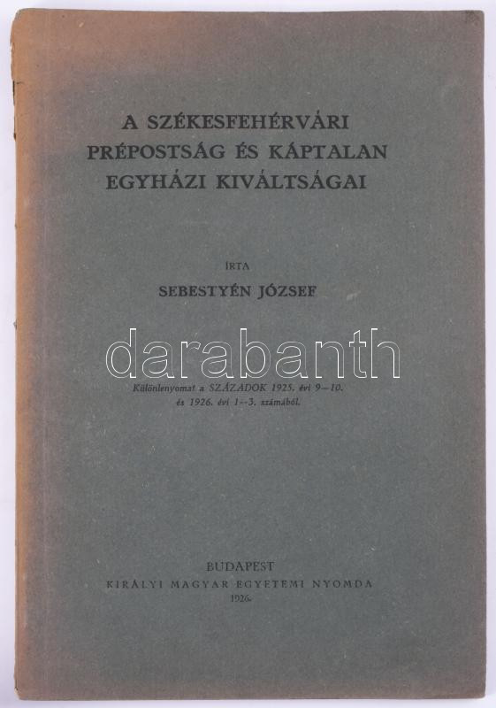Sebestyén József: A székesfehérvári prépostság és káptalan egyházi kiváltságai. Különlenyomat a Századok 1925. évi 9-10. és 1926. évi 1-3. számából. Bp., 1926, Kir. M. Egyetemi Nyomda, 58 p. Kiadói papírkötés, sérült gerinccel, bejelölésekkel, névbélyegzésekkel.