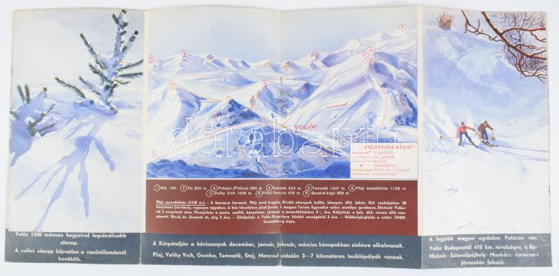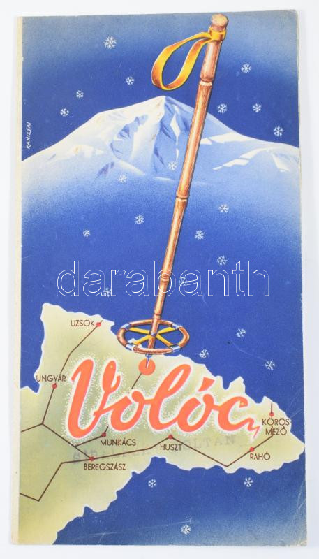 cca 1940-1944 Volóc. Kárpátaljai, kihajtható utazási prospektus. Bp., Pallas-ny., színes, illusztrált (Kanizsai) borítóval, rajta Kárpátaljával, 4 sztl. lev.