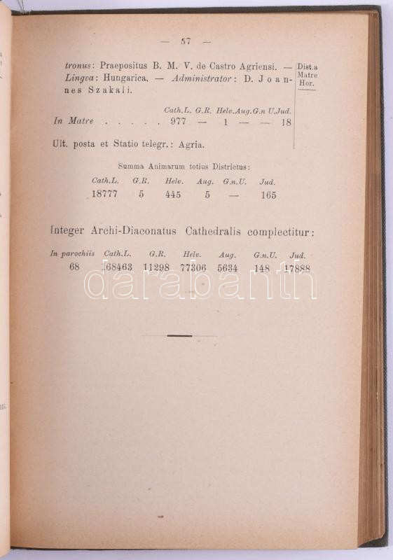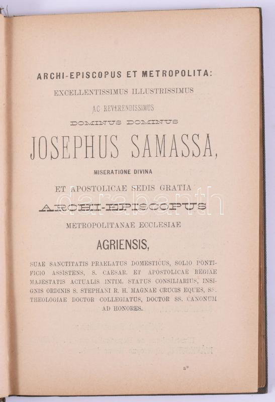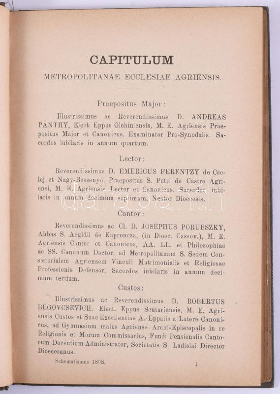 Schematismus Cleri archi-dioecesis agriensis ad annum Jesu Christi 1895, 1898. Agriae, Typis Lycei Archi-Episcopalis. Kiadói egészvászon kötés, kopottas állapotban.