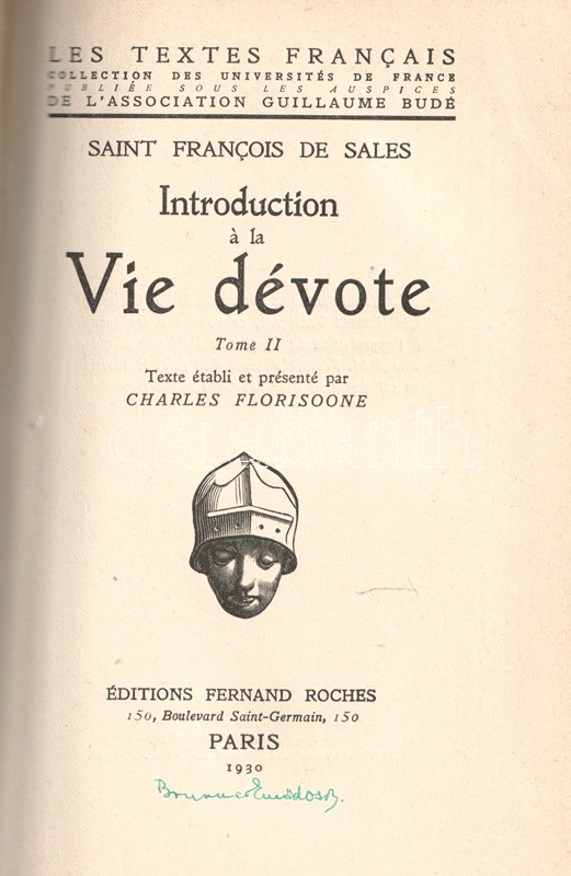 Introduction á la Vie dévote. Tome I-II. Texte établi et présenté par Charles Florisoone. [Teljes mű két kötetben, egybekötve.]