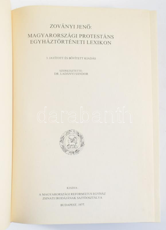Zoványi Jenő : Magyarországi Protestáns Egyháztörténeti Lexikon, Bp., 1977, Magyarországi Református Egyház. Kiadói egészvászon kötés, jó állapotban.