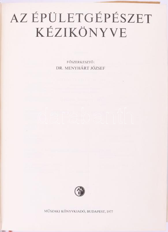 2 db épületgépészeti könyv: Az épületgépészet kézikönyve. FÅ‘szerk.: Menyhárt József. Bp., 1977, Műszaki Könyvkiadó. Kiadói egészvászon-kötés, kissé sérült, a könyvtesttÅ‘l részben elváló borÃtóval, egy-két kijáró lappal. + Épületgépészeti számÃtások példatára. I. köt. Szerk.: Völgyes István. Bp., 1970, Műszaki Könyvkiadó. Kiadói egészvászon-kötés, részben fakó borÃtóval, néhány kissé gyűrött lappal. Megjelent 3500 példányban.