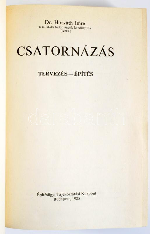 Horváth Imre (szerk.): Csatornázás. Tervezés - építés. Bp., 1985, Építésügyi Tájékoztatási Központ, 708 p.+ 1 (kihajtható) t. Kiadói kartonált papírkötés, sérült gerinccel.