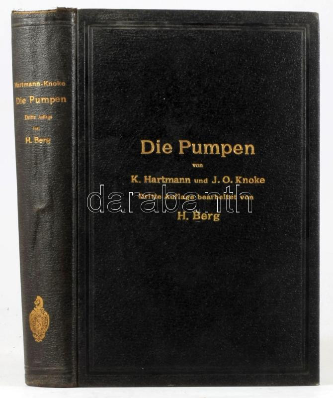 K. Hartmann - J. O. Knoke: Die Pumpen. Berechnung und Ausführung der für die Förderung von Flüssigkeiten gebräuchlichen Maschinen. Von - - und - -. Dritte, neu bearbeitete Auflage. von H. Berg. Berlin, 1906., Julius Springer, XI+1+636 p.+2 t. + XIV t. Fekete-fehér szövegközti illusztrációkkal.