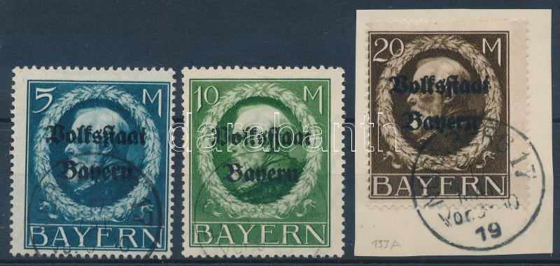 Német államok - Bajorország 1919 Mi 131, 132, 133 szép, hibátlan darabok (Mi EUR 140.-)