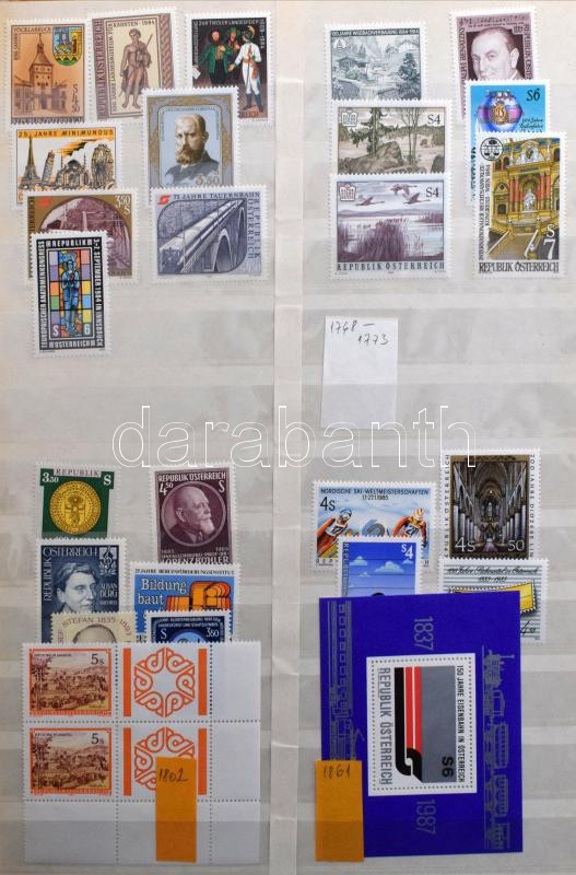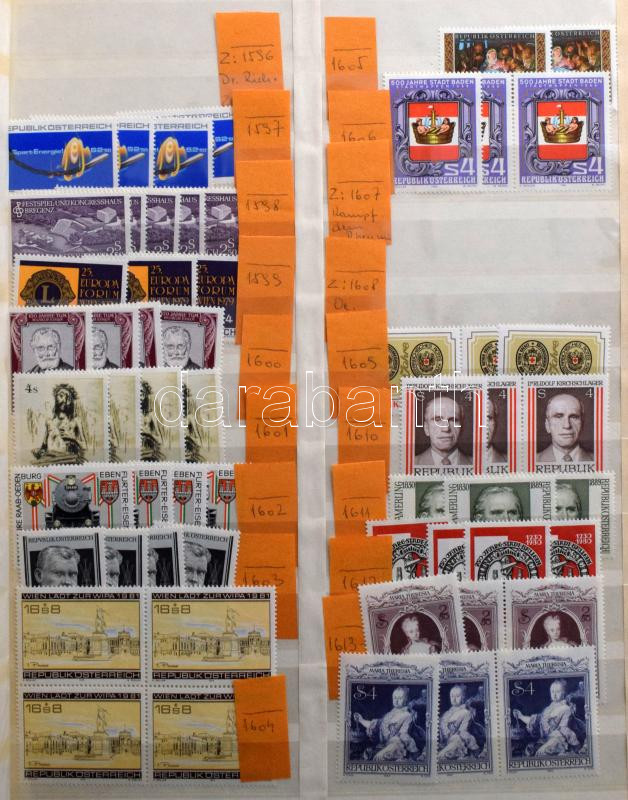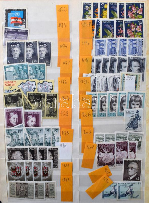 Ausztria gyűjtemény, hozzá sok példányos készlet az 1958-1984 közötti időszakból kevés korábbival, 28 lapos ABRIA berakóban