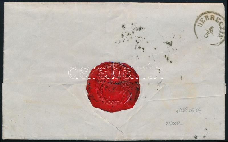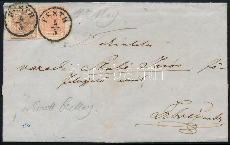 1852. Levél 3kr + 6kr "PESTH" - "DEBRECZIN"
