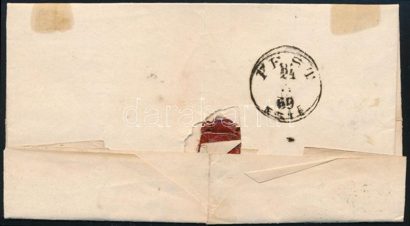 1869 5kr levélen, alul és a jobb oldalon ollóval vágva, "TISZA-ROFF" (Gudlin 400 pont) - "PEST / ESTE"