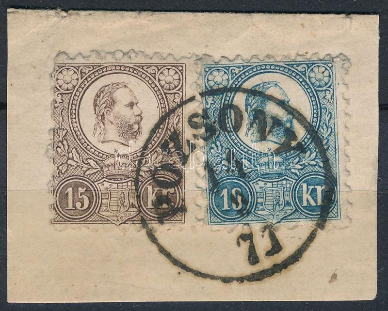 1871 Réznyomat 10kr + 15kr kivágáson "POZSONY"