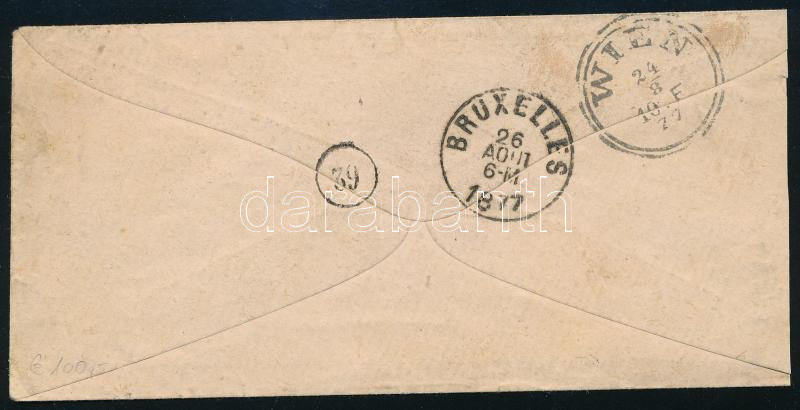 1877 10kr levélen "BUDAPEST / DÉLUTÁN" - "BRUXELLES"