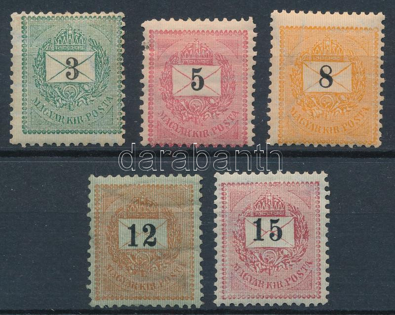 1889 4 klf falcos bélyeg + 3kr postatiszta (törött sarok / folded corner)
