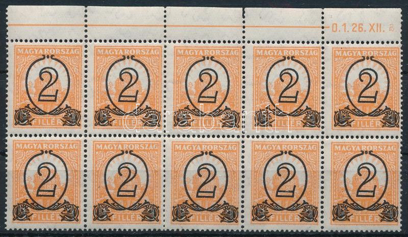 1931 Kisegítő bélyegek (I.) 2/3f ívszéli 10-es tömb (36.000) (fogelválások / aparted perfs.)
