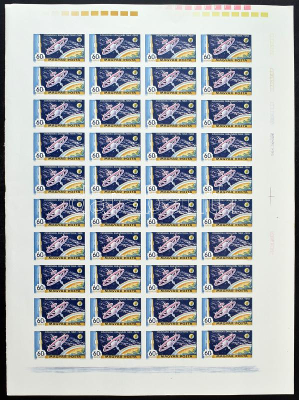 1969 A Hold meghódítása 60f gumi nélküli vágott 40-es nyomdai ív, nyomdai jelzésekkel