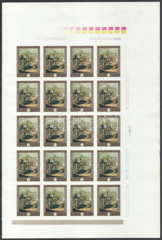 1969 Festmények VII. 60f gumi nélküli vágott 20-as teljes nyomdai ív, nyomdai jelzésekkel