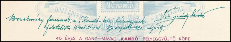1980 Légrády Sándor grafikusművész pályafutásának 50 éves évfordulójára kiadott, a Lánchíd III. blokkot ábrázoló emléklap, bélyegkiállítási alkalmi bélyegzéssel, Légrády üdvözlő szöveggel és aláírással