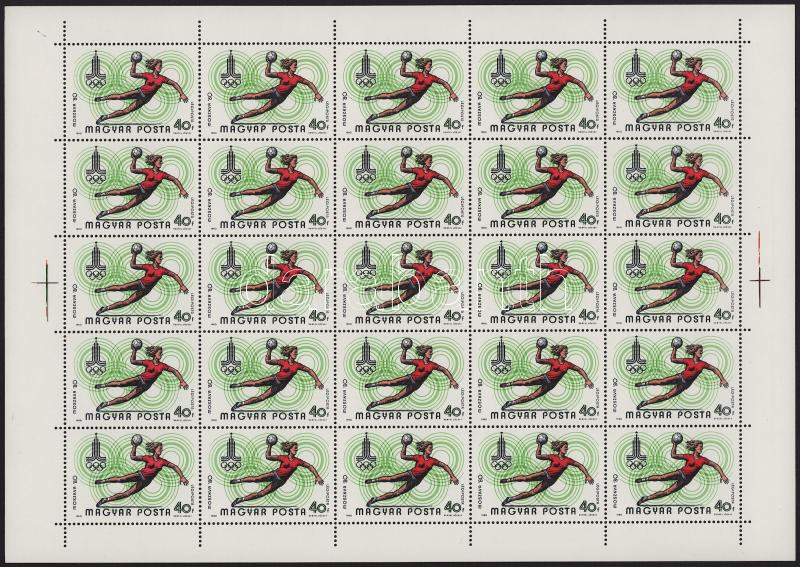 1980 Olimpia (VIII.) - Moszkva 40f 3 db teljes ív, mindegyikben a "MAGYAP" tévnyomat (24.000+)