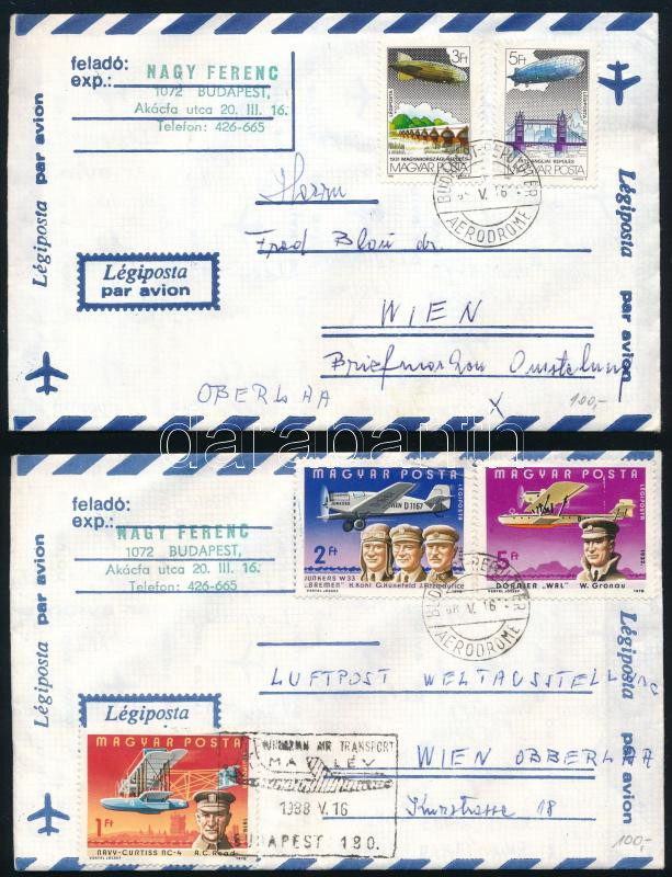 1979-1988 3 db futott légiposta levél Nagy Ferenc levelezéséből + 4 db légiposta díjjegyes boríték (1 futott, 3 használatlan)