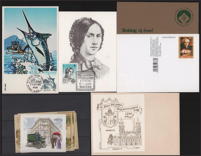Főleg magyar küldemények, díjjegyesek, képeslapok, 1 blokk és néhány emlékív