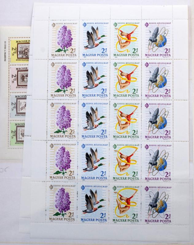 Hatalmas magyar tétel, főleg modern anyag a 90-es évekig egy kevés régivel 11 db A/4 és nagy + 2 db közepes berakóban, nagy hullámkarton ládában: gyűjtemények, gyűjteményrészek, rendező részletek, összefüggések, több példányos anyagrészek, sok blokk, kisív stb. Nagyon tartalmas anyag, sok fotó készült!!