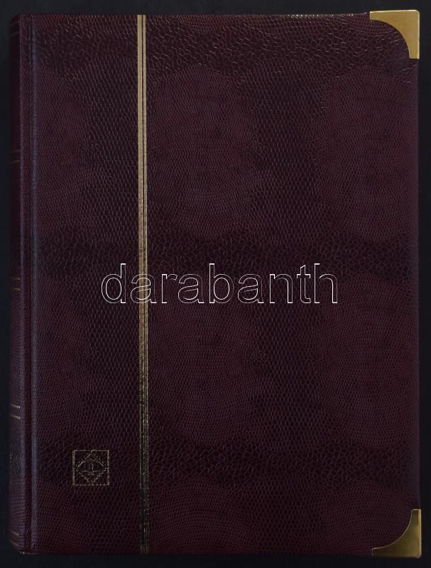 Leuchtturm 32 lapos A/4 berakó bordó színű kígyóbőr hatású borítóval, benne néhány magyar bélyeg