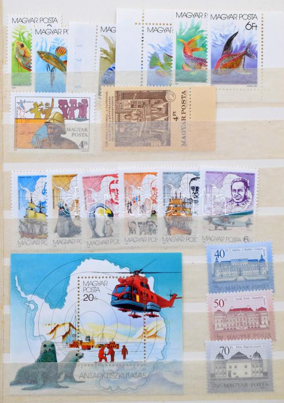 Vegyes modern tétel, benne többletpéldányok, blokkok, jobb értékek is, 4 db közepes berakóban